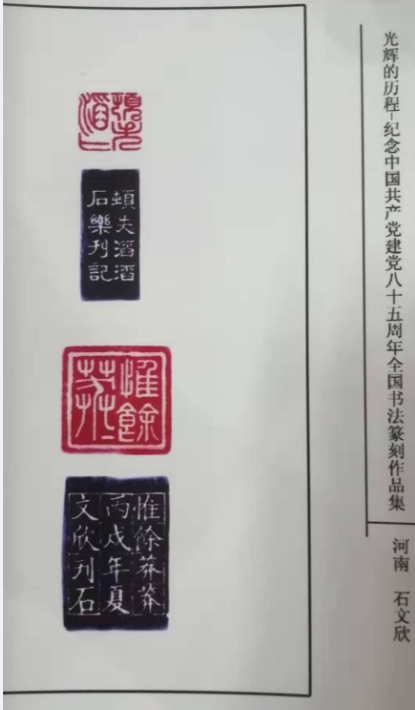 河南省书法家协会会员石文欣时间:2020-01-12 石文欣,男,汉族,1946年出生于七朝古都--开封。五体篆刻皆能,擅长楷书,篆刻。现任河南省书法家协会会员、河南省美术家协会会员、中国工艺美术家协会会员、中国书画家协会理事、中国书法函授学院客座教授。 人物履历: 石文欣,字乐石。1946年出生于河南省开封市。自幼酷爱书法、篆刻、美术、雕刻。 1968年从军,曾向党的“九大”献礼,书法荣获北京军区二等奖,刺绣毛主席像荣获北京军区三等奖。后于北京工艺美术学院进修。1971年到铁道部大桥工程局参加工作,在工作之余,自修书法,篆刻,美术和艺术雕刻;字体饱满,干脆利落,舒缓有致,力道遒劲,沉着厚重,自成一家;期间参加全国书画展和工艺美术展并多次获奖。后醉心于创作研究,技艺精湛,有鲜明的艺术个性和神采意境。 2006年参加中国工艺美术家协会《中华杯 中国工艺美术 书法作品大赛 》中篆刻作品获老年组金奖,并授予“中华书画艺术精英”称号;后参加中国书法家协会主办的“光辉的历程,纪念中国共产党建党八十五周年全国书法作品大赛”中,篆刻作品入选,入编《全国书法作品集》。同年加入中国工艺美术家协会。 2007年11月参加中国书法函授学院举办的“中国书画大赛”中,书、画、篆刻作品获金奖,入编《书画家精品集》,并聘为中国书法函授学院客座教授。 2008年5月参加中国书画家协会举办的第二届“神州杯”,全国书画艺术大赛中,篆刻作品《伟大祖国 欣欣向荣》获金奖,入编《当代书画家墨迹宝典》,并授予“爱我神州书画名家”荣誉称号,同时加入中国书画家协会,任理事。