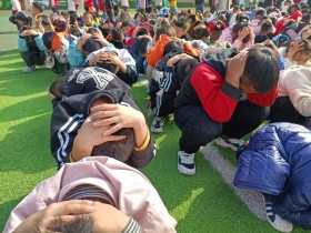 烟台芝罘区西牟小学开展地震避险和紧急疏散演练活动