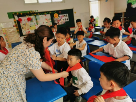 山东莘县王庄集镇中心小学开展“红领巾心向党”主题队会活动
