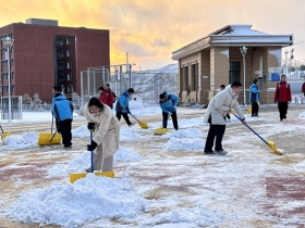 党建引领聚合力 除雪破冰暖校园——烟台开发区八中校园除雪在行动
