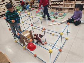 烟台市莱山区黄海路街道中心幼儿园看开展“创意拼插消防局”建构游戏