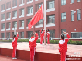 濮阳市清丰县第三实验小学举行“学习守则规范 争做文明学生”主题教育升旗仪式