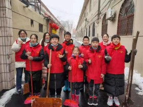 春雪里的一抹红——中牟县官渡路小学志愿者扫雪活动掠影