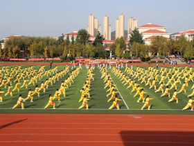 烟台市莱山区中小学运动会上第八小学戚家拳表演震撼全场