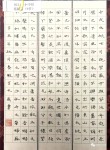 今天我们来看秦毓言的参展作品,书写的内容是苏轼的《赤壁赋》。 作品取法魏碑,从笔画的特征上来看也有墓志的影子,整体章法采取了三条屏的形式。笔画的变化比较丰富,比如横画有的两头翘起,有的一头尖锐,另一头圆润,字形的大小变化也比较精彩,而且楷行间杂,所以整体上显得比较灵动。 当然这幅作品也有瑕疵,一是内容的断句不够合理,二是感觉前两屏比较从容,而左边这一屏显得局促了一些,不够舒展。但从整体效果上来看,瑕不掩瑜,这幅作品也得到了多数评委的认可,被评为第五届逸道雅集杯全国硬笔书法作品展的逸道之星