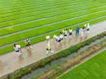 2023年4月21日,在眉山市彭山区凤鸣街道金烛村育秧田里,一片绿油油的秧苗长势正好,一块块秧盘整齐排开美丽异常。 眉山市彭山区第四小学开设“田间课堂“,在”世界地球日”当天该校师生走进秧田,用画笔描绘美丽春色,感受春天气息,进一步引导同学们树立尊重自然、珍爱地球,人与自然和谐共生的理念。近年来,彭山区以活动为载体,以自然,人文,社会环境为依托,五育并举,积极探索第二课堂,让第二课堂成为学校生活的希望田野,成为学生开心、幸福、能动、生机勃发的生命成长的元支点,营造良好的教育生态。(翁光建摄)图说:4月