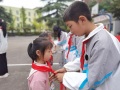 火红的队旗高高飘扬,指引我们前行的方向,鲜艳的红领巾满载理想,引领我们逐梦远航。2023年10月11日下午,巴中市巴州区鼎山镇中心小学校一年级全体师生在学校操场举行“队旗飘飘·领巾飞扬”少先队入队仪式。入队仪式在雄壮有力的少先队出旗曲中拉开序幕。紧接着,全体少先队员们齐唱队歌《我们是共产主义接班人》,嘹亮的歌声表达了同学们对少先队组织的热爱。齐唱队歌结束后,大队辅导员赵凤琴宣读了一年级一、二、三中队成立,并向中队辅导员授旗。随后,宣读新队员名单,一年级的新队员们用炽热的目光迎接这光荣的时刻,脸上写满了自