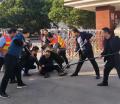 10月21日,四川省达州市宣汉县大成镇中心校开展了反恐防暴应急演练活动。 活动前,学校制定了详细的反恐防暴演练方案,召开了专题会议,让每个教职工都明确自己的职责和任务。 上午9点,学校正在上课,一名由教师扮演的持刀“暴徒”强行进入学校,值班保安手持钢叉立即前去阻止,另一名保安立即打电话报告分管副校长,分管副校长立即拨打报警电话,并通知广播组拉响警报,要求全面启动应急程序,指挥应急小组成员在最短的时间内就位,按照分工与职责,共同处理突发事件。同时班主任听到警报声立即赶往班级和任课教师一起指挥学生关闭门