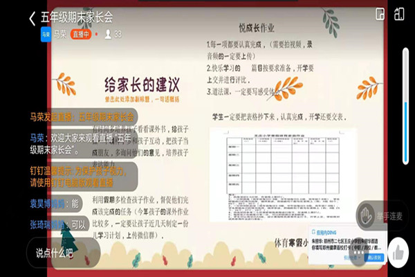 家校共育 静待花开——郑州市二七区王庄小学线上期末家长会时间:2021-02-04 为进一步加强家校联系,达到家校共育的目的,共同呵护学生的健康成长,结合当前疫情防控的严峻形势,2月2日晚,郑州市二七区王庄小学各班通过钉钉群召开了2020-2021 学年度上期线上期末家长会。