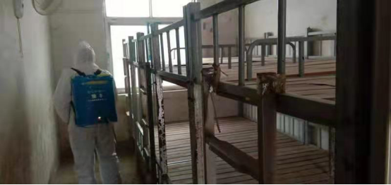 对办公室进行通风换气,物体表面和地面进行预防性消毒,并打扫室内卫生,保持环境清洁。对餐厅、教室、走廊、厕所、宿舍等重点场所进行清扫,边边角角彻底消毒,并开窗通风,保证空气流通。