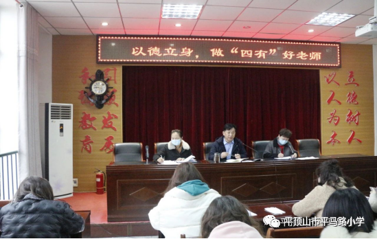 胡忠慧校长激情开场,引领回望2020年工作成效与不足,全面安排新学期工作;闫书记反馈师德师风报告表填写情况,宣读该校关于开展《“礼赞建党百年,矢志为党育人”师德师风宣传活动方案》,对活动提出明确要求,并以“从党史中汲取前进的智慧和力量”为题进行党史学习教育活动进行动员,激励教师立足本职岗位,不忘立德树人初心,坚守为党育人、为国育才的使命担当,真正成为有理想信念、有道德情操、有扎实学识、有仁爱之心的“四有”好老师。 新学期,新希望!(平顶山平马路小学 刘亚利 张申民) |