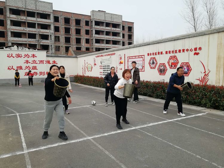 “相约春天 追梦美好”——新乡市获嘉县大新庄乡宁南小学庆国际三八妇女节趣味运动会时间:2021-03-09 阳春三月,万物复苏,为更好的展现教职工健康向上、充满活力的精神面貌,树立女教职工美丽、健康新形象,培养精诚合作的团队意识,在第111个国际“三八”妇女节来临之际,新乡市获嘉县大新庄乡宁南小学在田径场举办“相约春天 追梦美好”庆三八国际妇女节教职工趣味运动会。 全体教职工参加了“十拿九稳”、“双龙戏珠”、“百发百中”、“女神保龄球”四个项目的比赛,每个项目都妙趣横生、精彩纷呈。随着裁判的一声哨响,第一个项目在此起彼伏的“加油”声中拉开了帷幕,参赛队员们身手矫健、精诚合作、团结一致,卯足了劲头争取胜利,现场呐喊声、欢笑声、助威声汇成了一片欢乐的海洋。