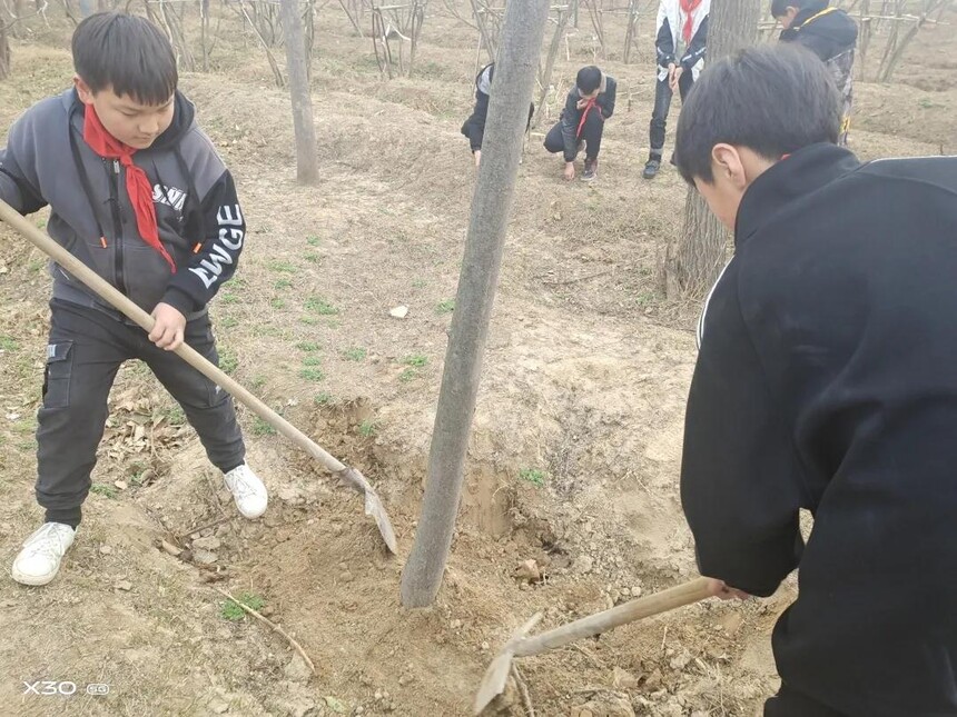 同学们在中心小学少工委办公室主任吴哪哪老师的带领下到校外开展植树节植树活动,在老师们的指导和亲身示范下,孩子们很快学会了正确给小树松土、浇水,并齐心协力地忙活了起来,看,同学们的脸上露出灿烂的笑容,为自己的劳动成果感到骄傲,并希望小树越长越壮,越长越高。