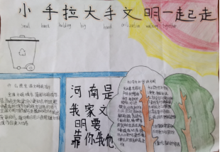 商丘市示范区和风小学开展“小手拉大手,文明一起走”系列活动之 “文明伴我成长”手抄报比赛时间:2021-03-25 为进一步开展“小手拉大手,文明一起走”家校互动活动,提高学生参与活动的自觉性和积极性,2021年3月24日上午,商丘市示范区和风小学举行了以“文明伴我成长”为主题的“小手拉大手,文明一起走”手抄报评比活动。