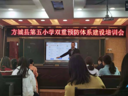 本次培训活动,让全体教师深入了解了双重预防体系建设的相关内容,认识到了安全工作的重要性,明确了自己工作中安全值日的责任。(南阳市方城县第五小学政教处   马小慧)