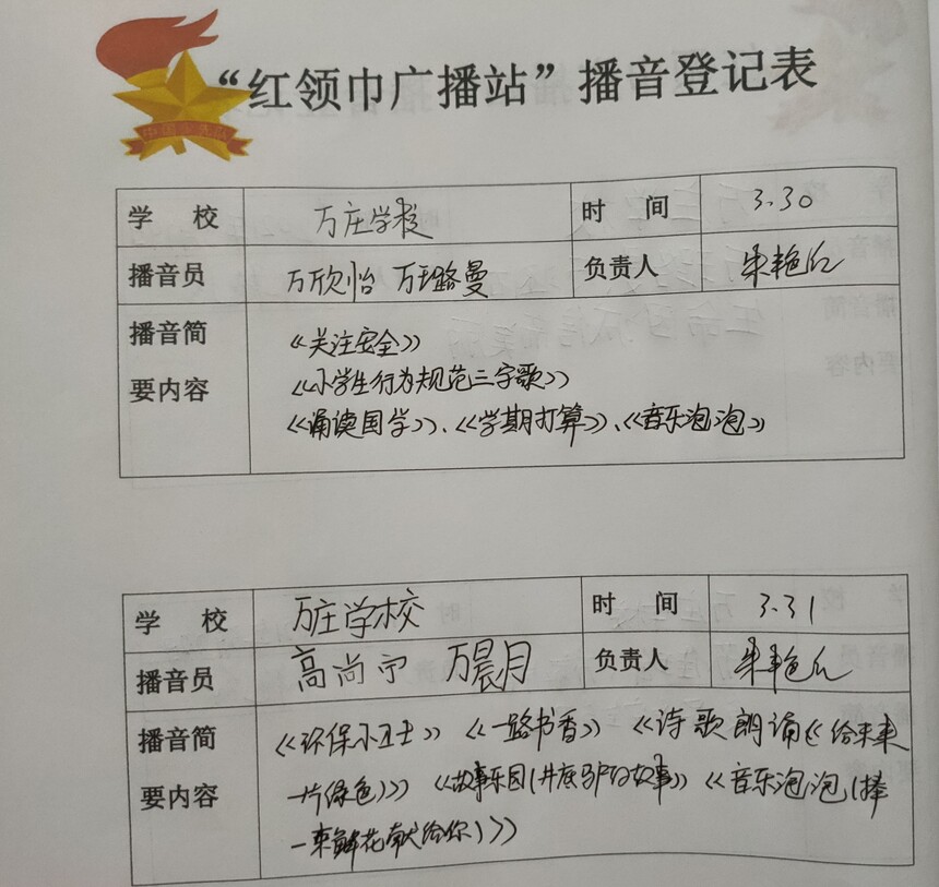中牟县雁鸣湖镇万庄学校:红领巾广播站 精彩与你相约时间:2021-04-01 校园广播站是学校德育活动的一个重要阵地。为了充分发挥它的自我教育、丰富课余生活的作用,为了锻炼提高学生的综合能力,中牟县雁鸣湖镇万庄学校“红领巾广播站”开设了丰富多彩的栏目。2021年3月31日,学校已经开展了第5期“红领巾广播站”。
