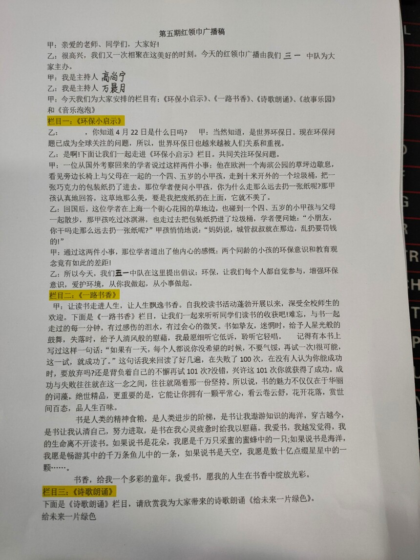 本期栏目有“环保小启示”、“一路书香”、“诗歌朗诵”、“故事乐园”和“音乐泡泡”这5个栏目。“环保小启示” 栏目通过一些小故事或者小文章,以这种通俗易懂、潜移默化的方式,告诉孩子们要增强环保意识,保护环境,爱护环境,从身边小事做起,从自我做起;“一路书香”更是和“书香校园”紧密结合,营造了良好的读书环境,在书香中,给孩子们一个多姿多彩的童年,也愿孩子们在书香中绽放自己的光彩;“诗歌朗诵”为学生们诵读经典诗歌,对学生们进行文学上的熏陶,提高他们的朗读水平和对美的感知能力;“故事乐园”给学生们讲述经典、优秀的故事,提高学生们的阅读能力、理解能力、思维能力,开阔他们的视野; “音乐泡泡”播放当今流行的、健康的、活泼的、富有朝气的儿童歌曲,让美妙的音乐伴随学生们愉快地学习与生活。