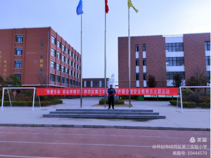 珍爱生命,安全伴我行——开封市祥符区第三实验小学开展全国安全教育日主题活动时间:2021-04-01 为切实提高学生安全意识和自我防护能力,保护学生健康成长。3月29日上午,开封市祥符区第三实验小学大队部积极开展了“珍爱生命,安全伴我行”全国安全教育日主题系列活动。