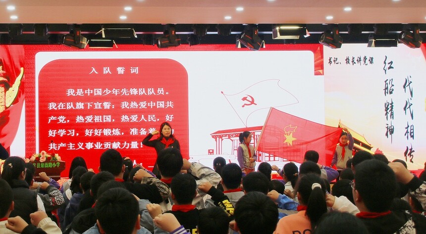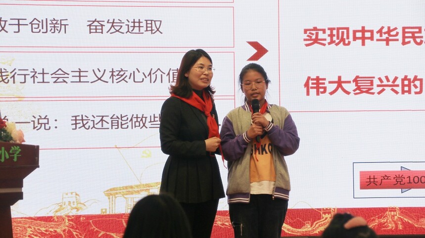 2021年4月8日,中牟县紫薇路小学党支部书记、校长王慧娟转身“变”为党史宣讲员,在学校报告厅为五年级297名队员带来了一节精彩的党史宣讲课。
