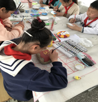 孩子们用绘画工具在一块块淇河石上尽情抒发对党、对祖国的一片深情:党旗、五星红旗、和平鸽、家乡、校园、红领巾,无不彰显出孩子们心中对党、对祖国的浓浓敬仰之情。(鹤壁市鹤山区双语小学供稿) |