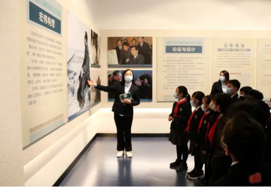 在沙盘模型和文物勘探场景复原前,同学们听着老师讲解的勘探故事,发出阵阵感叹。南水北调工程,是我国有效缓解南北水资源严重不平衡的现状,增强人民福祉,促进国家发展的战略性工程。此次参观,也是同学们作为当代少年儿童了解国家大政方针、培养爱国主义精神、坚定爱国主义信念、践行爱国主义实践的使命与责任。 接着,展现在同学们眼前的是“金石帝迹·薪火传圣——2021(辛丑)·黄帝文化金石拓片展”。 看着精美而文化底蕴深厚的展品,同学们直观地了解到了如何用宣纸和墨汁,将碑文、器皿上的文字或图案,清晰地复制出来的这种古老的传统技艺。 “你看,这是我的姓!” “这是什么字体啊,怎么不像我们平时学的汉字呢?” …… 在“汉晋古砖里的百家姓”展区,同学们细细分辨着自己的姓氏。汉晋砖文由于受载体限制而对所取文字在笔画上省减或增补,以求在整体章法上的和谐统一,这正好增加了砖文的趣味性,同学们个个“猜”得饶有趣味。