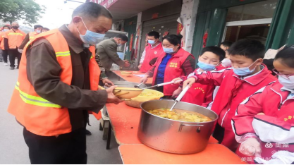 爱心粥棚献爱心 志愿服务品快乐——南阳市第三十九小学志愿服务活动纪实时间:2021-05-21 志愿服务是现代社会文明进步的重要标志,是加强和促进精神文明建设的重要载体,是培育践行社会主义核心价值观的生动实践。5月20日早上五点半,天气虽然有点小冷,但白河街道办事处社区的爱心粥棚里却暖意融融。南阳市第三十九小学四二班20位同学和家长在杜校长和李颖老师的带领下早早到这里进行志愿服务活动。 同学们到达地点后,就开始分工干活,布置吃早餐的桌椅。在杜校长的带领下同学们主动给爱心粥棚捐款,100元,10元,20元.... 随后孩子们在张女士的带领下进行宣誓:我宣誓,自愿加入,志愿组织,热爱中华,复兴有责,热爱祖国,遵纪守法,热爱社会,倡导新风,热爱社区,兴办慈善,热爱众生,和谐光明,热爱科学,讲究文明,热爱慈善,无私奉献,帮助他人,不计名利,成就他人,不求回报。