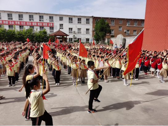 六一儿童节前夕,开封市禹王台区夏理逊小学进行“庆六一我入队我光荣”第二批新队员入队仪式活动。