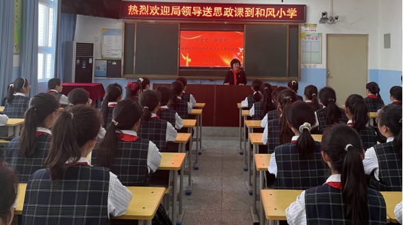 商丘市示范区科教文体局副局长岳恒辉走进商丘市示范区和风小学讲思政课时间:2021-05-27 为深入贯彻落实习近平总书记“上好思政课”的重要论述,全面贯彻党的教育方针,认真贯彻“立德树人”的根本任务,努力培养担当民族复兴大任的时代新人,培养德智体美劳全面发展的社会主义建设者和接班人,商丘市示范区开展了领导干部进学校讲思政课活动。