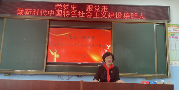 2021年5月27日上午,商丘市示范区科教文体局副局长岳恒辉同志走进商丘市示范区和风小学以“学党史 跟党走,做新时代中国特色社会主义建设接班人”为主题,为师生讲述了一堂精彩的思政课。一同到会的领导还有商丘市示范区科教文体局宋慧敏主任。思政课内容分为“学习党史、意义重大”“学习党史、不忘初心”“学习党史、不负韶华”三个部分。岳恒辉以真实的抗疫情境,鲜活的抗疫英雄、抗战英雄为例,讲述了什么是民族精神,引导学生树强国之志。在场师生认真聆听,纷纷表示要向英雄模范学习,学习他们信念坚定、对党忠诚;学习他们顾全大局、闻令而动;学习他们义无反顾、迎难而上;学习他们无私无畏、甘于奉献。