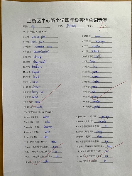 单词竞赛展风采,以赛促练共成长——郑州市上街区中心路小学开展英语单词竞赛活动时间:2021-06-01 为丰富校园文化生活,激发学生学习英语的积极性,提高学生积累英语词汇的意识,郑州市上街区中心路小学在5月27日下午举行了英语单词竞赛活动。 比赛过程中,所有同学铆足了劲,全神贯注地答题,力争书写准确而规范。同学们凭借日常学习中对所学单词的积累,快速地进行单词的拼写,为争取获得更好的成绩而全力以赴。
