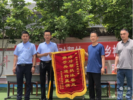 结对帮扶沐春风,携手共进传真情,赵三小学校长带着两校共同发展,共同提高的心愿为春风路小学送上了锦旗,今后两校将持续通过物质支援、教学送教、管理协作等方式,结对帮扶春风行动,两校师生将手牵手,共同托起教育梦。(平顶山市城关镇春风路小学 李建宾) |
