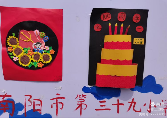童心向党 坚定前行——南阳市第三十九小学举行“学党史,知党恩,跟党走”庆建党100周年主题画展时间:2021-06-03 百年历程,从星星之火到光耀华夏;百年风云,从苦难深重到辉煌繁荣。中国共产党领导中国人民改天换地,走向民主富强。今年是中国共产党成立100周年,为庆祝党的生日,坚定学生的理想信念,激发爱国情感,南阳市第三十九小学先后开展了童心向党文艺演出、红色经典诵读、红歌比赛等一系列活动。六月一日上午,学校又举行了“学党史,知党恩,跟党走”庆祝建党100周年主题画展,让学生们感受祖国的繁荣昌盛,增进学生的爱国情感,激励学生为实现中华民族的伟大复兴而努力奋斗!