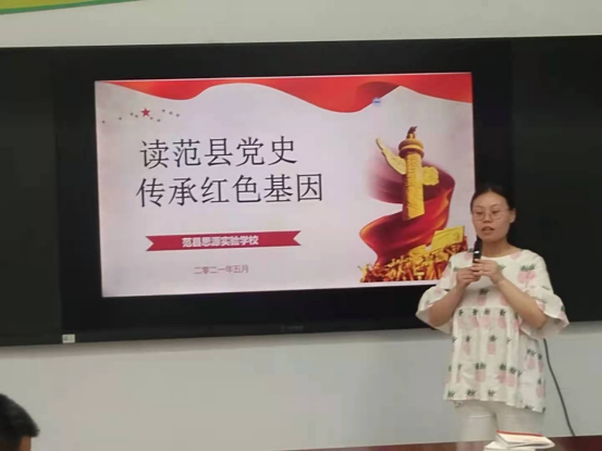濮阳市范县思源实验学校举行第七次党史教育主题活动时间:2021-06-03 6月1日,濮阳市范县思源实验学校举行第七次党史教育主题活动,党支部书记薛全芹主持,全体党员参加活动。