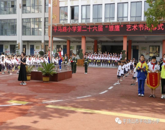 “童心向党”——平顶山卫东区平马路小学举行第二十六届“雏鹰艺术节”闭幕式时间:2021-06-04 “六一国际儿童节”到来之际,平顶山卫东区平马路小学举行了“童心向党”第二十六届雏鹰艺术节。本次艺术节老师们精心组织,学生积极参与,各种活动精彩纷呈。为总结成绩,表扬先进,5月31日上午,学校举行了艺术节的闭幕式。