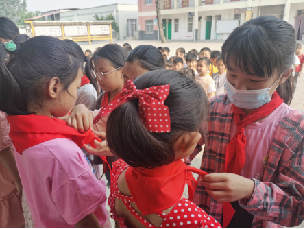 仪式上,辅导员老师宣布了入队新队员名单,高年级的老队员为少先队新队员戴上了鲜艳的红领巾,使他们成为了一名光荣的中国少年先锋队队员,当鲜艳的红领巾佩带在他们的胸前时,新队员的脸上都洋溢着激动与自豪。随后,少先队新队员学生代表发表了入队感言,表示一定好好学习,好好锻炼,严格要求自己,多做好事,让胸前的红领巾更加鲜艳。接着,校领导作了重要讲话。最后,入队仪式在队员们“时刻准备着!”的呼号声中圆满结束。