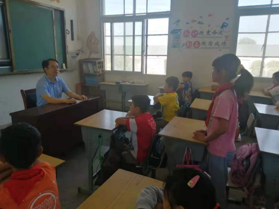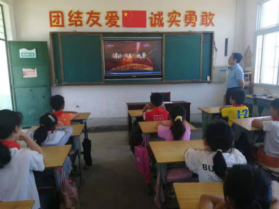 课堂上何局长用亲切的语言带领同学们重温国旗、党旗、少先队队旗的图案及所含意义。以英雄人物视频资料为契机,引发同学们思考“何为英雄”,身为新时代的好少年如何学习英雄引领自我成长。四一班的全体师生认真倾听,积极互动。最后,何局长鼓励他们牢记先辈们的谆谆教导,从小学党史,永远跟党走!中共郑州航空港区大关庄小学支部书记董兆伟同志做了最后总结,并代表全体师生对何局长的到来表示感谢。