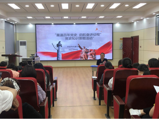 开封市化建小学党支部开展“重温百年党史 启航奋进征程”党史知识答题活动时间:2021-06-21 党史学习重实践,知识答题促进步。为进一步强化“四史”学习教育,激励广大党员干部继承和发扬党的优秀传统和优良作风,开封市化建小学党支部于6月18日下午,开展了党史知识答题活动。 本次知识竞赛答题活动是该校喜迎建党一百周年系列活动之一,全校教职员工参加了答题竞赛。竞赛采用笔试的形式,共分为单选题、多选题、问答题三个内容,试题涉及党的100年光辉历史中的重大历史事件、重要思想、重要方针政策和重要历史人物等。整场竞赛各位老师认真读题、认真审题、认真答题,在规定时间之后都交上了一份满意的答案。