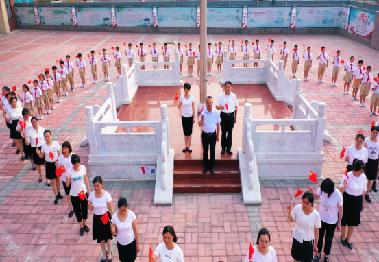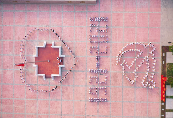 近日,全体师生齐聚国旗下,学生头戴花环,一派节日的盛景。师生手拿党旗、国旗,容光焕发、神采奕奕。 铝板琴方阵组成了“1921-2021”的字样,呈现出建党100周年的光辉历程,清脆悦耳的琴声表达着对党的热爱和祝福;雄壮有力的口风琴方阵在激昂的乐声中巧妙地变换成党徽”形状,寓意着孩子们在党的阳光雨露下茁壮成长;全体师生挥舞着党旗国旗用绕着国旗台组成一个“心”字,寓意着把爱心献给孩子诚心送给家长,信心留给自己。