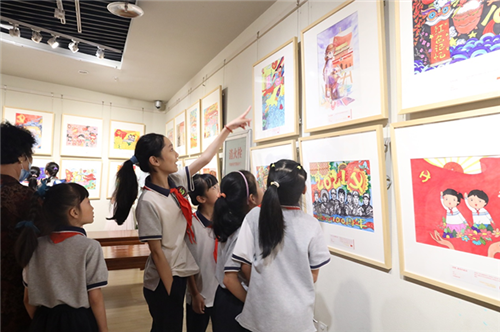 郑州市金水区黄河路第一小学学生作品在省少儿图书馆“童心向党 庆建党百年”少儿美术作品联展中亮相时间:2021-07-05 6月29日上午,由河南省文化和旅游厅主办的“童心向党——庆祝中国共产党成立100周年少儿美术作品联展”线下展览在省少儿图书馆开幕。郑州市金水区黄河路第一小学美术教师李慧等人带领社团学生观展,此次展出是全省67家图书馆近2万幅作品通过层层筛选,精选出200余幅作品进行展出,学校11名学生作品进行展出。该展览还将在全国52家图书馆进行巡展,为中国共产党成立100周年献礼。