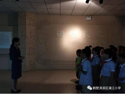 弘扬光荣传统 赓续红色血脉——鹤壁市淇滨区漓江小学二年级学生走进鹤壁市博物馆参观学习时间:2021-07-26 7月19日,鹤壁市淇滨区漓江小学二年级举行了“弘扬光荣传统,赓续红色血脉“社会实践活动。学生们兴致勃勃参观了鹤壁市博物馆,进行红色精神学习。 01参观鹤壁古代陈列馆 走在展馆内,循着古老的足迹,孩子们对鹤壁的传统文化,历史印记都有了初步的记忆。在这里,我们听到了鹤壁因“仙鹤栖于南山峭壁”而得名的传说,也了解到了鹤壁窑出品的瓷器的精美,尤其是“黑釉凸线纹罐”,它釉色晶莹光亮,可鉴人影,非常漂亮。