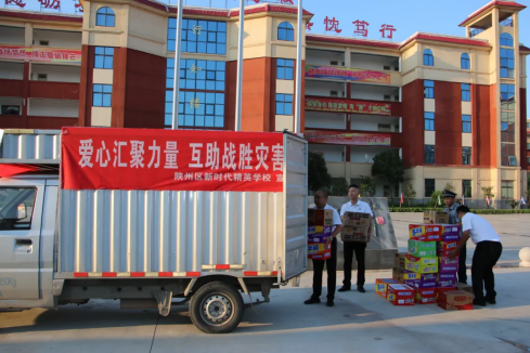 这两天,河南省多区域遭遇极端强降雨,这突如其来的特大暴雨几乎揪着所有人的心。从没有人想过,传说中的水漫金山,竟然真的有一天会在华夏大地上演。天灾无情人有情,此次灾情无疑牵动着全国人民的心。 值此危难之际,三门峡陕州区新时代精英学校董事长宋巍、校长潘克辛当机立断,积极行动,购买物资进行捐助,只为奉献该校的一份微薄力量,以实际行动支援灾区渡过难关,早日恢复生产,重建美好家园。2021年7月25日早晨,该校执行校长胡念龙、党支部书记李红涛、后勤主任高浩、校办主任李明及部分工作人员将饮用水、方便速食等防汛应急物品装车,随后将捐赠物资送往设立在陕州区人民政府的陕州区红十字会临时站点。 一方有难 八方支援