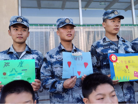 7月31日上午,在“八一建军节”前夕,开封市禹王台区夏理逊小学四六中队少先队员代表,带着慰问品和精心编排的节目来到驻汴某旅,代表全校少先队员为全体指战员官兵送上节日祝福。