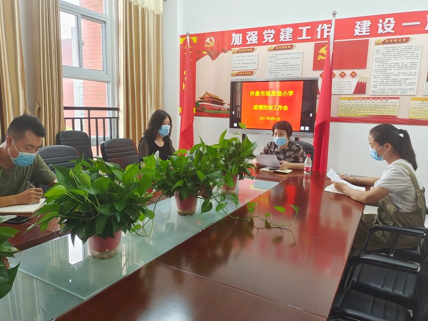 抗击疫情,我们在行动——许昌市瑞昌路小学疫情防控专题工作会时间:2021-08-02 为全力遏制新型冠状病毒感染的肺炎疫情蔓延,坚决打赢疫情防控阻击战,确保全校师生身体健康和生命安全,许昌市瑞昌路小学领导组,于2021年8月1日下午召开了疫情防控部署工作专题会。