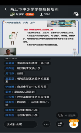 疫情防控不放松 有序开学保稳定——商丘市示范区和风小学组织全体班主任参加疫情防控策略视频培训会时间:2021-08-20 校园绿意浓,静待学子归。开学临近,按照商丘市教育体育局《关于举办2021秋季开学校园疫情防控策略视频培训会的通知》的文件精神,为加强新型冠状病毒感染的肺炎疫情防控校园安全工作,8月19日下午3点40分,商丘市示范区和风小学组织全体班主任及安全副校长王春梅准时参加此次疫情防控策略视频培训会。 此次线上培训会介绍了本次疫情形式的严峻性及复杂性,要求各位班主任把握“六个”入学条件;扎实做好“八项”开学准备;精准掌握入学报道时“三个环节”的方法;开学后应做实“六类”工作。该校各位班主任老师认真参会,及时记录。