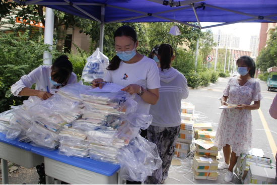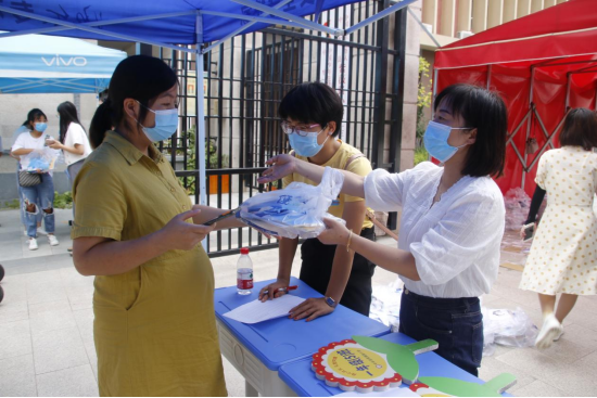 郑州市中牟县紫薇路小学:家校携手战疫情,别样发书暖人心时间:2021-08-27 线上教学是疫情防控期间对课堂教学最有效的延伸和弥补,为满足疫情防控期间“学生不返校 停课不停学”的学习需求,确保线上教学质量。2021年8月27日下午,郑州市中牟县紫薇路小学后勤处、政教处进行统筹组织,在各年级主任、班主任及综合组老师的共同配合下,高效、安全、有序地把新学期的课本发放到了学生手中。 为了保证课本发放工作安全有序的完成,后勤处、政教处制定了分批、错峰到校领取新课本的方案。班主任利用班级钉钉群、电话等途径发布领新书通知,并告知家长具体领书时段,叮嘱家长出门必须配戴口罩,路途注意交通安全,并要求做好疫情防护,领书时要自觉保持一米五的间隔距离排队等候,不聚集、不聊天,不停留,配合班主任老师做好一记一领,防止错发。