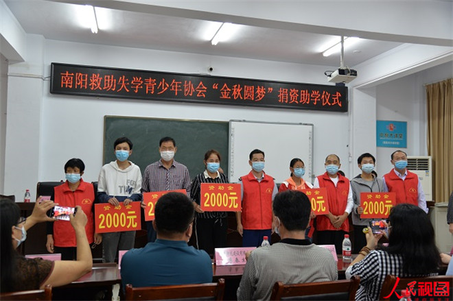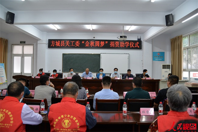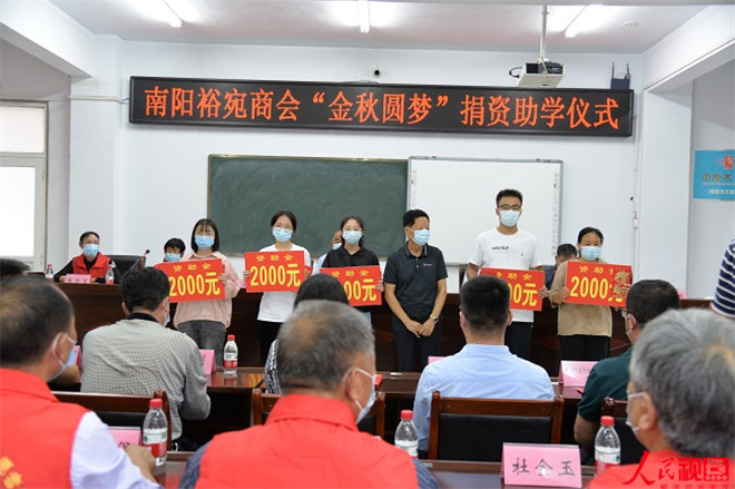 人民视点河南讯(倪申 张琴 通讯员 张栋察)真情点燃希望,爱心成就梦想。8月31日,河南省方城县关工委举行“金秋圆梦”捐资助学仪式,30名品学兼优的贫困大学新生受赠南阳裕宛商会、南阳市救助失学青少年志愿者协会各2000元的资助金。