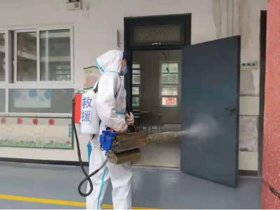 “全面消杀”为师生安全返校保驾护航——周口市郸城县第二实验小学开展校园消杀活动时间:2021-09-02 随着开学季的到来, 为统筹推进新冠肺炎疫情防控和提前做好复工复课的相关准备工作。8月31日,周口市郸城县第二实验小学开展校园疫情防控“全面消杀”工作。本次消杀人员来自郸城蓝天救援队,四名专业人员通过规范操作,采用标准化消杀工具,分批次,分时段,分区域对所有教室、办公室、卫生间、餐厅、操场等场所进行消毒。真正做到全覆盖,无遗漏,零死角,将校园疫情防控,环境卫生与防疫消杀工作落到实处。