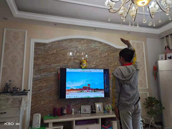 仪式上,唱国歌、国旗下讲话......这些都与平常的升旗仪式一样,只不过这次升旗不是全体师生一起在学校操场上,而是每一位学生在家里与父母一起升旗。