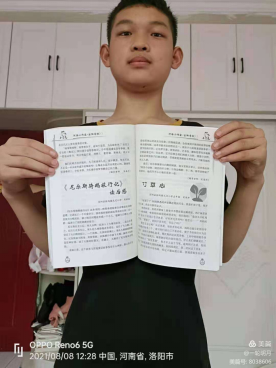 《小百花》主要刊登洛阳市知名作家的文章,也会特邀一些外地名家供稿,还会发现文学新人,刊登孩子们的作文,培养他们的写作兴趣,提高他们的写作水平。 该校学生车露怡、宋瑞丰、宋锦森、刘怡、宋翱翔、宋世昌6名学生作文,发表在2021年夏之颂版(一年有春夏秋冬四版)。特向编辑表达谢意,对孩子们表示祝贺,期待他们百尺竿头,更进一步,通过写作提升他们的学习,成为有用人才。 《小百花》正在举办“2021年爱我洛阳•共建家园”征文大赛,欢迎中小学生积极参与。 2021年6月,该学校宋世昌、宋锦森、车露怡、宋瑞丰被洛阳市儿童文学学会吸收为“小作家”,孩子们开心极了,家长也都倍感幸福。期待这几个“小作家”,多出新作品,不断成长。 最后祝愿《小百花》越办越好,盈卷的书香,飘拂在河洛大地,帮助更多孩子成就写作的梦想。(洛阳市宜阳县张坞镇元过小学 宋海洋) |
