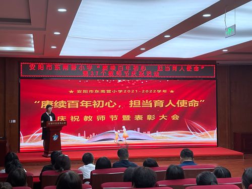 9月9日,安阳市东南营小学在学术厅开展庆祝第37个教师节暨30年教龄教师表彰活动。
